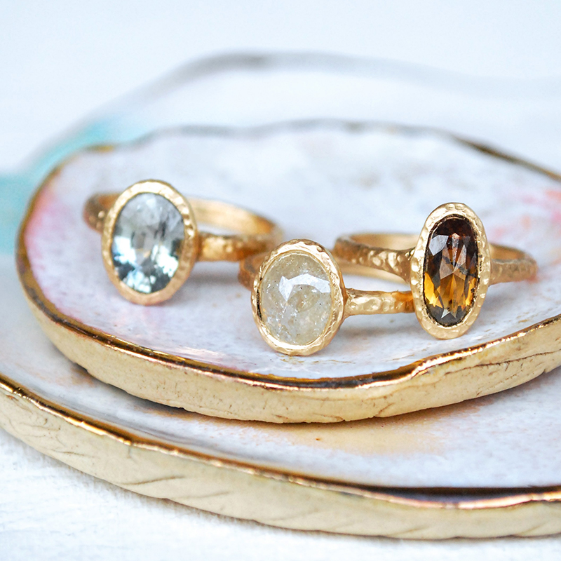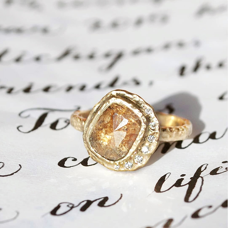 We have a special soft spot for the uniqueness of raw diamonds and rough diamonds of various colours. The one of a kind oval solitaire ring above features a magical cognac-coloured oval diamond. Beside it, a hazy rosecut diamond solitaire is also one of a kind.