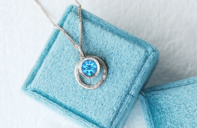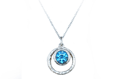 The 10k gold wheat chain accompanies a 10k white gold circle with a 1.10ct blue topaz. Hold it close to your heart!