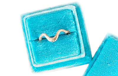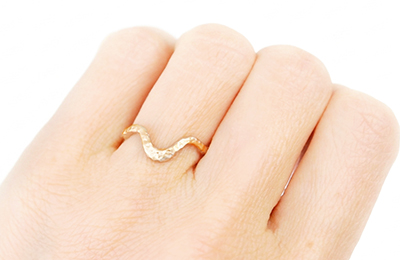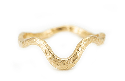 Sculpted 14k yellow gold deep wave wedding band, perfect to pair with a solitaire ring