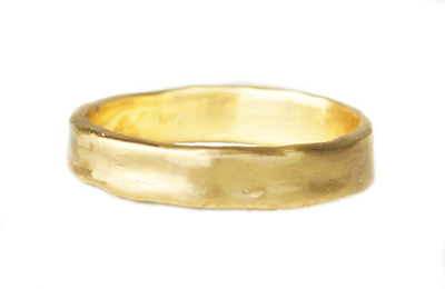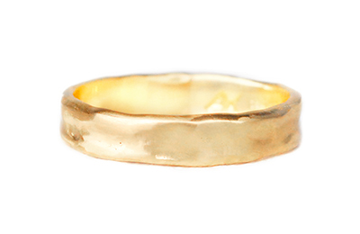 14k gold, 4mm wide, smooth, organic texture wedding band