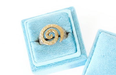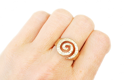 Sculpted gold signet ring in a spiral form