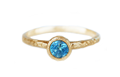 Teal sapphire textured gold ring