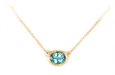 Gold necklace with an oval .72ct tourmaline, on a 16″ gold chain